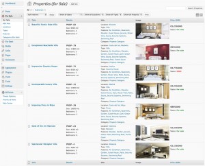 The property list gives you a tidy overview of your existing real estate entries. If you have a lot of objects, the taxonomy filters (location, property type, features and / or property category) will come in handy.