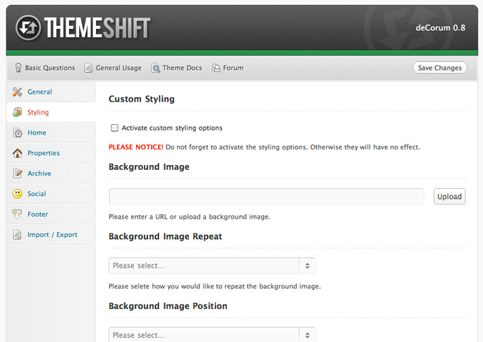 Changing logo, background images, button and link colors in deCorum is a breeze. With a view clicks in the styling options you can customize the theme to match your corporate image.